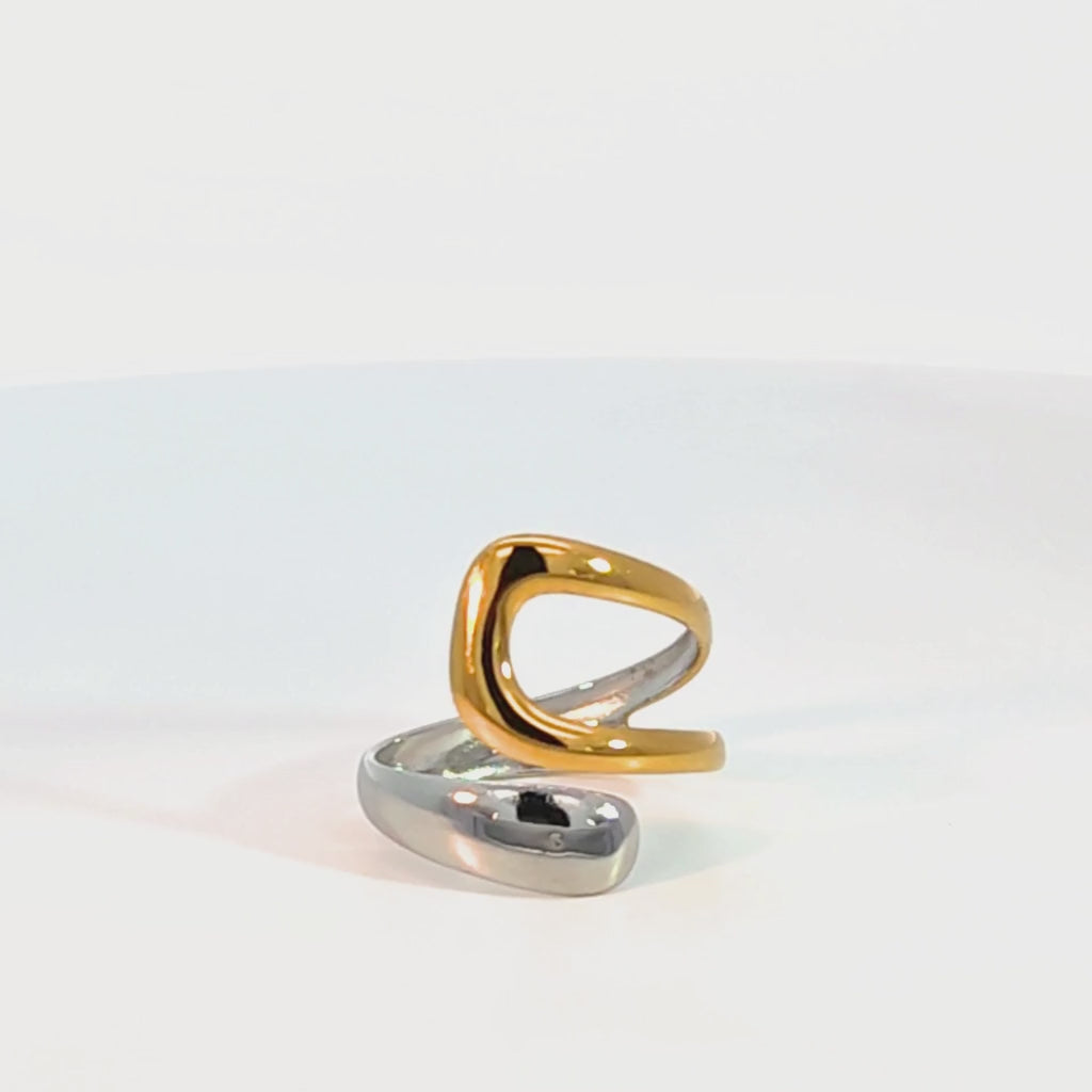 Questo anello è un vero pezzo di design, perfetto per chi ama la gioielleria moderna e minimalista con un tocco di audacia. La sua forma a spirale aperta crea un effetto "fluttuante" estremamente contemporaneo, mentre l'uso del bicolore aggiunge profondità e sofisticazione.