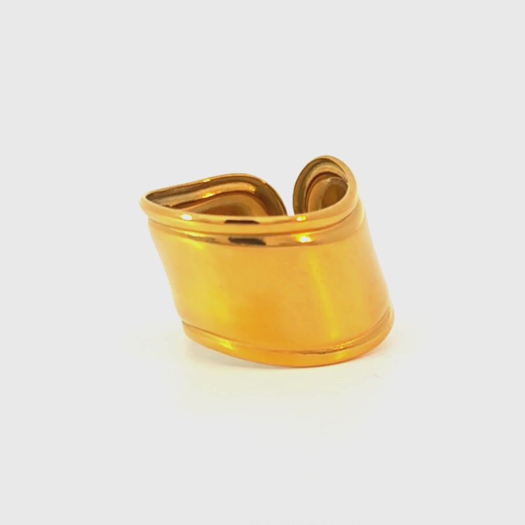 Questo anello è ideale per chi ama la gioielleria moderna e di grande formato. Caratterizzato da una fascia ultra-larga e avvolgente con profili curvi, incarna l'eleganza scultorea e pulita, trasformando il tuo dito in un punto focale di design.