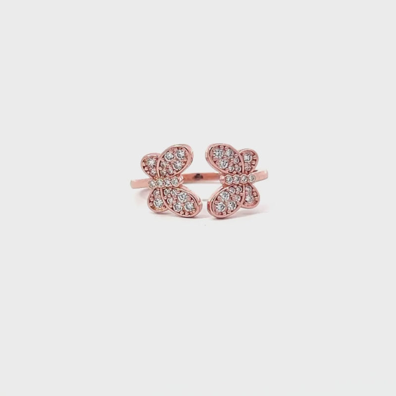 Anello in argento 925 con doppia farfalla impreziosita da zirconi bianchi. Elegante, romantico e perfetto da indossare ogni giorno.